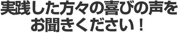 この“実践プログラム!喜業塾®”を活用すれば、あなたの心の底の底の底にある普段は気づくことがない!“マイナスの信念”がドカンと「プラスの信念」に変わり!今までの小さな問題はすべて解決されていきます。