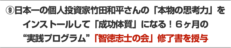 私は、今回のこの日本一の個人投資家 竹田和平さんの成功体質を身につける“実践プログラム”(智徳志士の会「久家講」)でコーチを務める