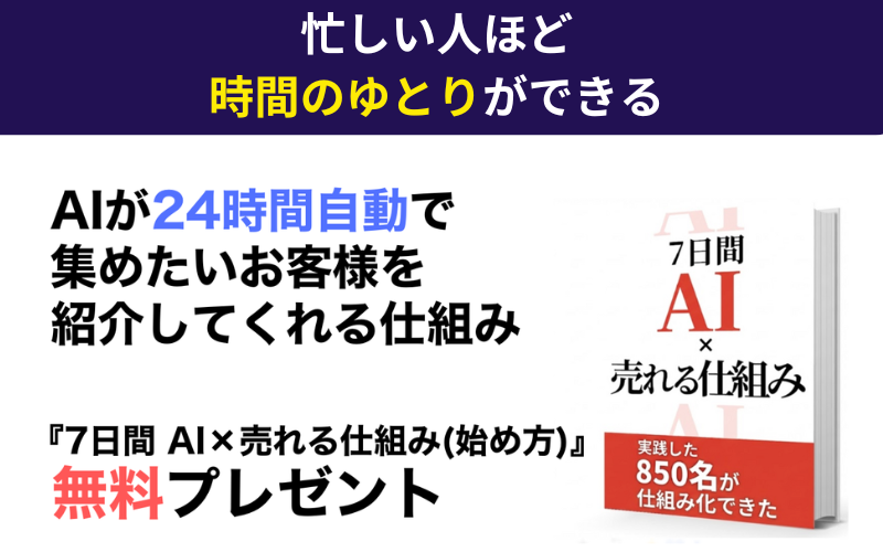 突然、集客が楽になった方法を大公開!【AI×7日で売れる仕組み】教科書プレゼント