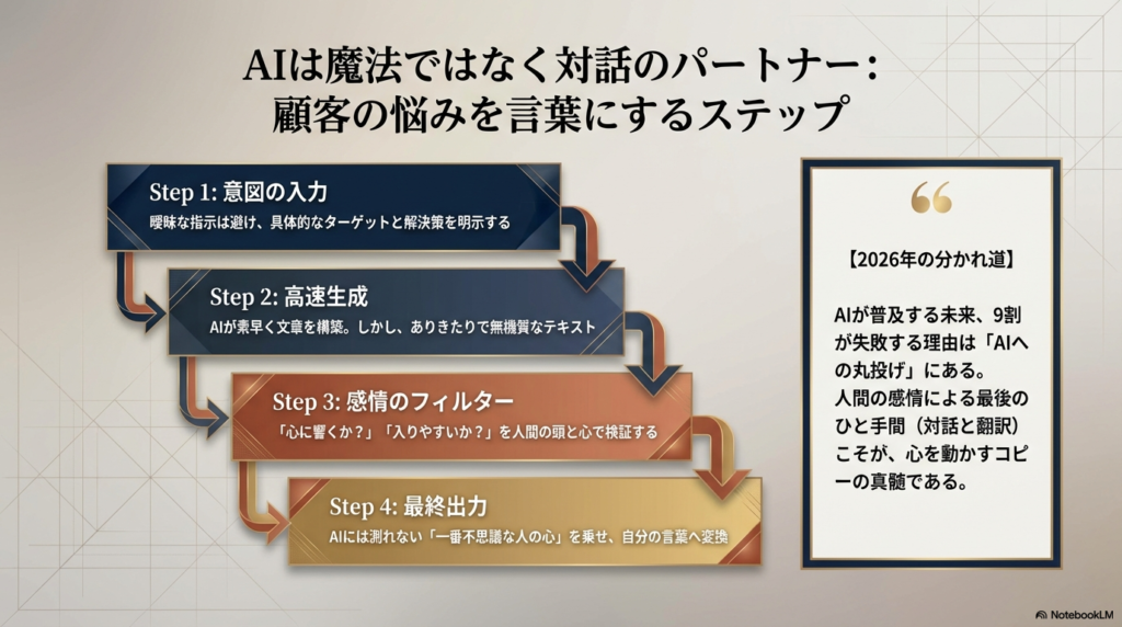 そして、AIを賢く使いつつ、最後は「人の気持ち」を大切にした言葉を届ける。